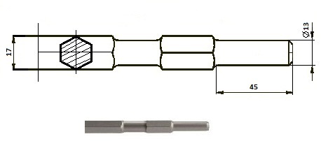Meissel mit Einsteckende Sechskant S17mm, Ø13x45mm. Geeignet für Elektro Hämmer: