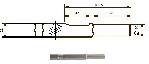 Meißel mit Einsteckende Sechskant S21mm mit Aussparung, Rund Ø19x65mm. Geeignet für Elektro Hämmer: