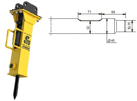 Meissel für den hydraulische Hammer Arrowhead S20.