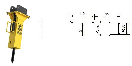 Meissel für den hydraulische Hammer Arrowhead S60.