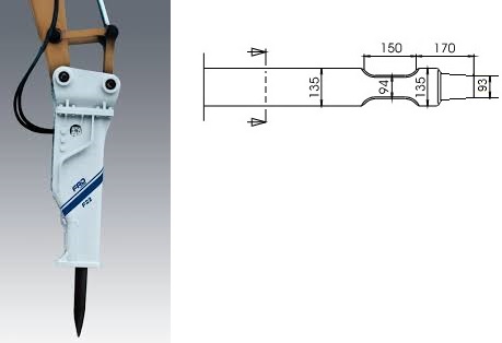 Kompatibel mit den Modellen Furukawa F 3 / FX 35 und KENT KF 3. Die Schneide des Meißels steht quer zum Baggerausleger, außer beim Asphaltspatens, der parallel dazu steht.