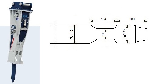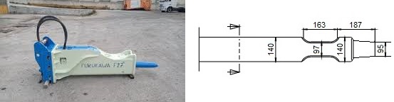 Kompatibel mit den Modellen Furukawa F 2 / FX 25 und KENT KF 2. Die Schneide des Meißels steht quer zum Baggerausleger, außer beim Asphaltspatens, der parallel dazu steht.