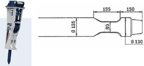 Meissel für hydraulische Hammer FURUKAWA HB 15 G / KENT KHB 150 / KHB 15 GII.