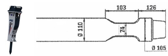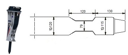 Meissel für hydraulische Hammer FURUKAWA HB 20 G / KENT KHB 200 / KHB 20 GII.